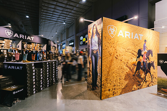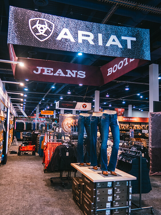 ARIAT VEGASJay O'Toole2026-02-18T18:08:50+00:00 The Retail Show The Ariat brand shop. The place to find head-to-toe Ariat at The National Finals Rodeo, Las Vegas, Nevada. EXPERIENCE DESIGN | PROMOTION | SIGNAGE | EVENT BRANDING The boots, jeans, hats, and clothing experience designed to sell. A rodeo champion customer experience. SFO LOGOJay O'Toole2026-02-18T17:55:28+00:00 SFO LOGO STAGECOACHJay O'Toole2026-02-18T17:57:02+00:00 STAGECOACH ARIAT DENIMJay O'Toole2026-03-25T19:08:42+00:00 ARIAT DENIM ARIAT SHOPJay O'Toole2026-02-18T18:05:57+00:00 ARIAT SHOP ARIAT VEGASJay O'Toole2026-02-18T18:08:50+00:00 ARIAT VEGAS ARIAT WORKJay O'Toole2026-02-18T18:13:04+00:00 ARIAT WORK